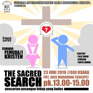 sudahkah anda mempersiapkan diri untuk menjadi pasangan yang baik di mata Tuhan? dan pasangan seperti apakah yang berkenan di mata Tuhan? yang mari hadirilah seminar pemuda di GIII Osaka.